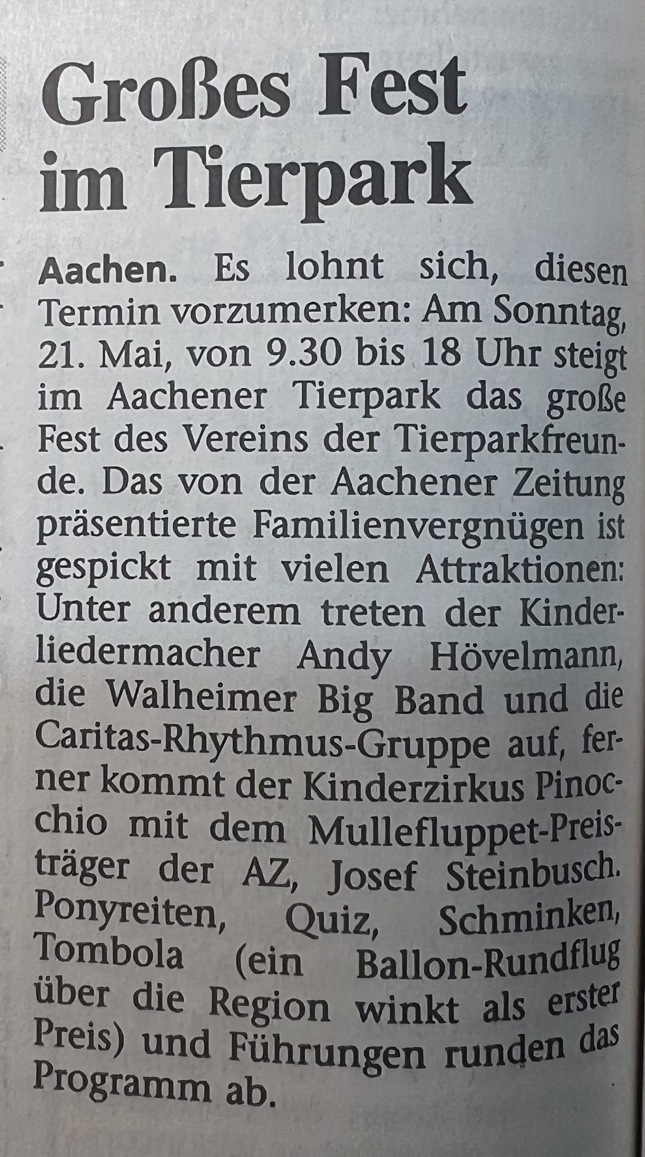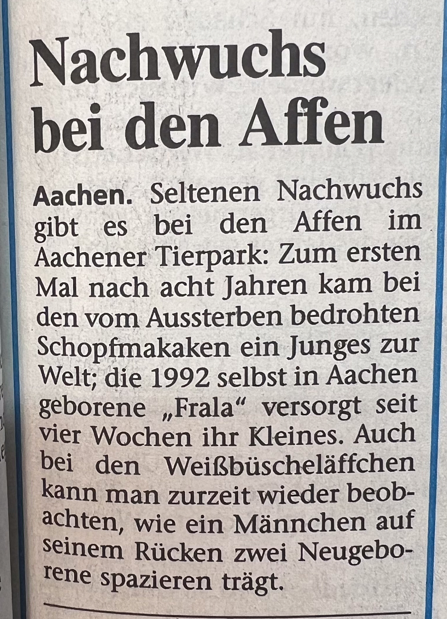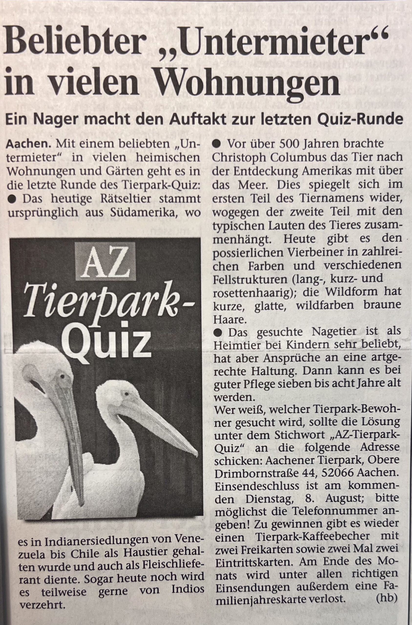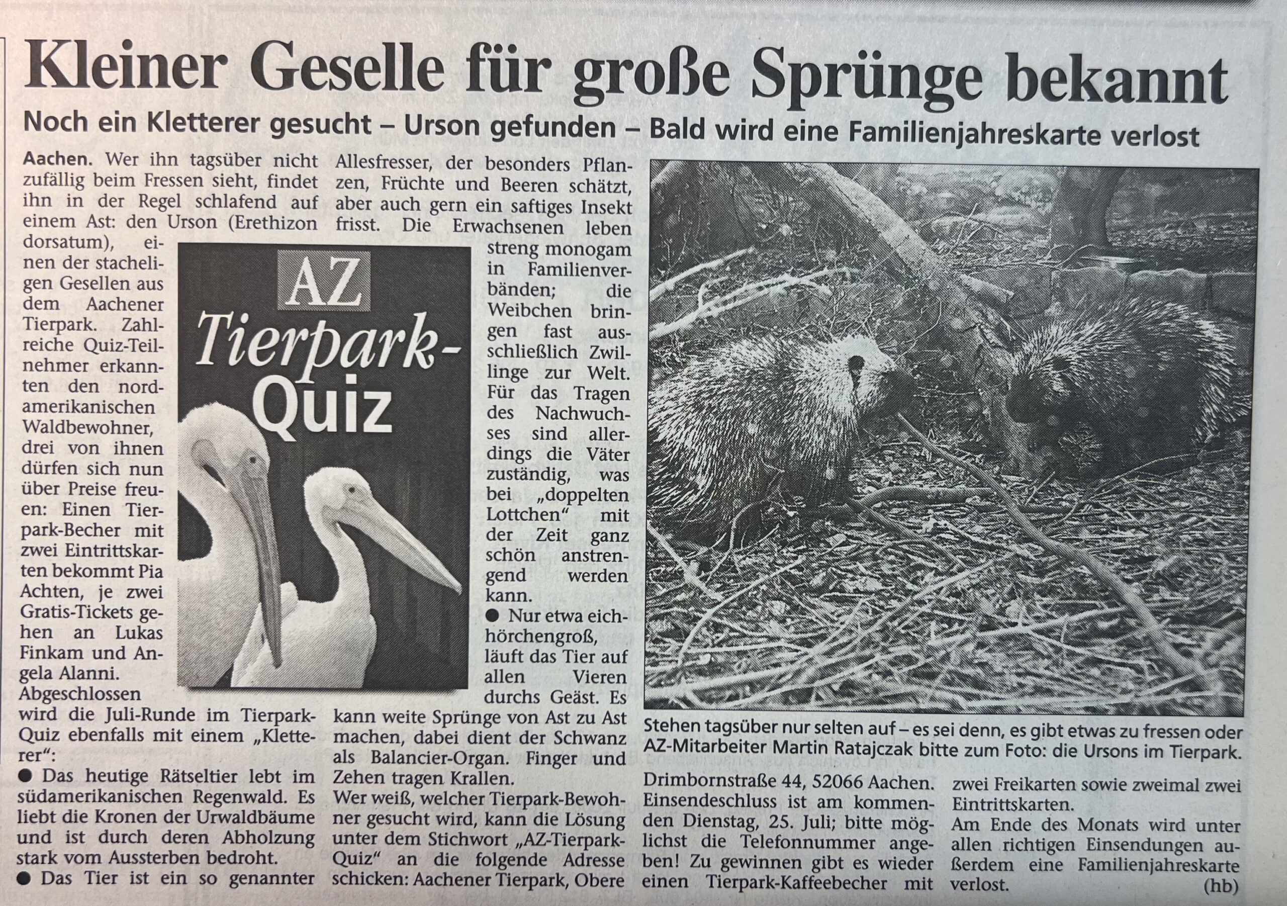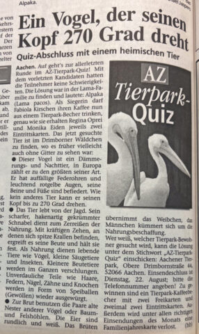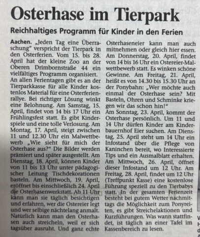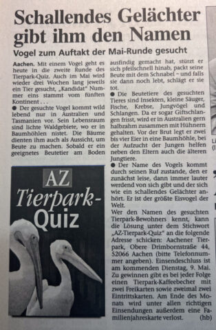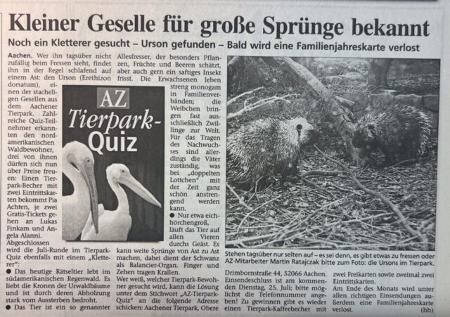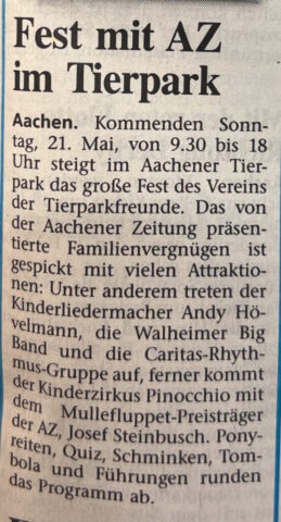 Kategorien Verschiedenes Zeitungsarchiv 2000 Neues Logo, Moorhühner und ein Piratenschiff Beitragsautor Von Herbert Sliwinski Veröffentlichungsdatum 30.06.2023 1999 Zurück zum Archiv… 2001 Teile Du diesen Beitrag als Erste(r)! Schlagwörter Presse ← 1999 Ein neuer Zoodirektor → 2001 Meersand, Pinguine und ein Kamelbaby