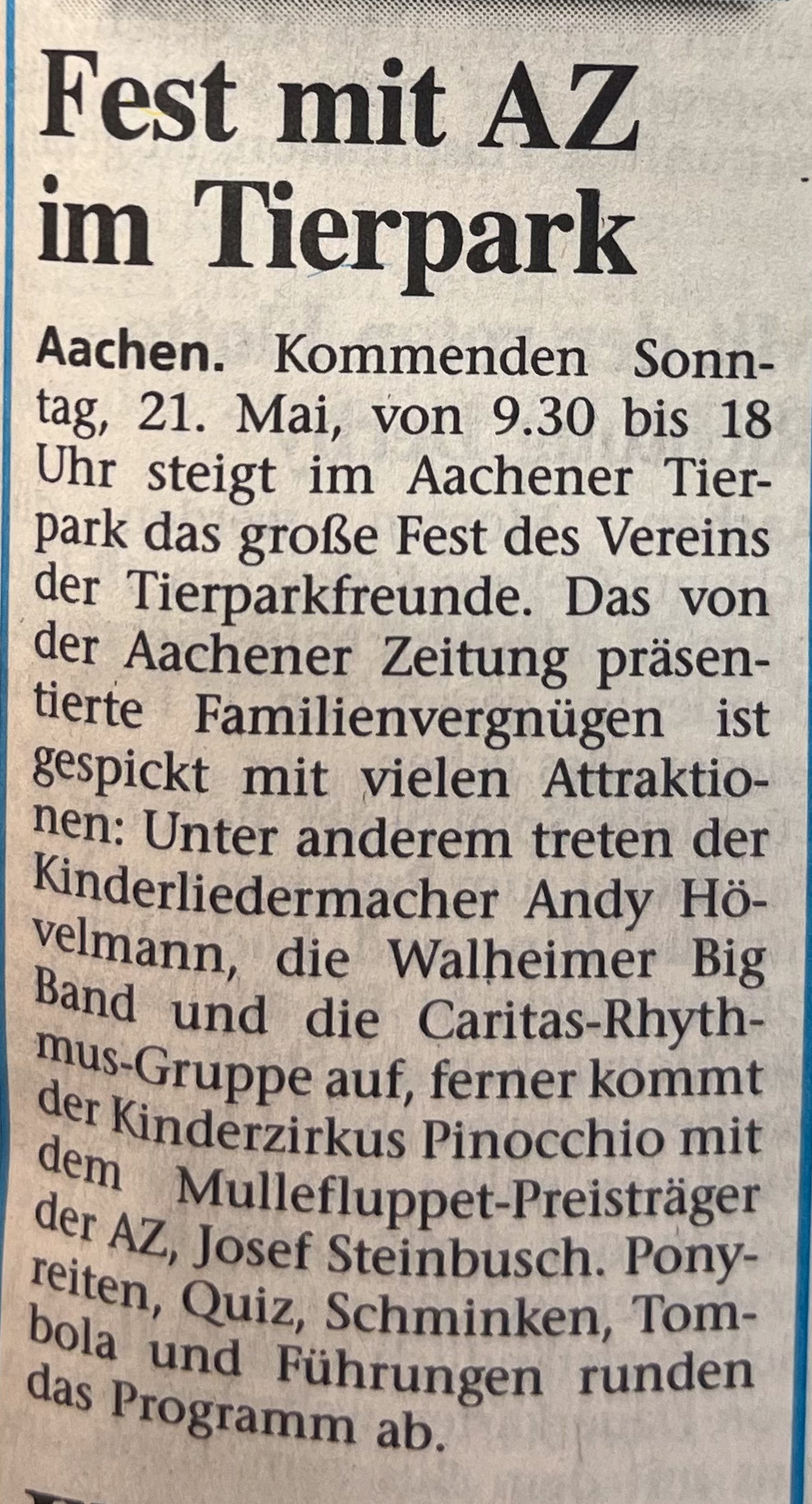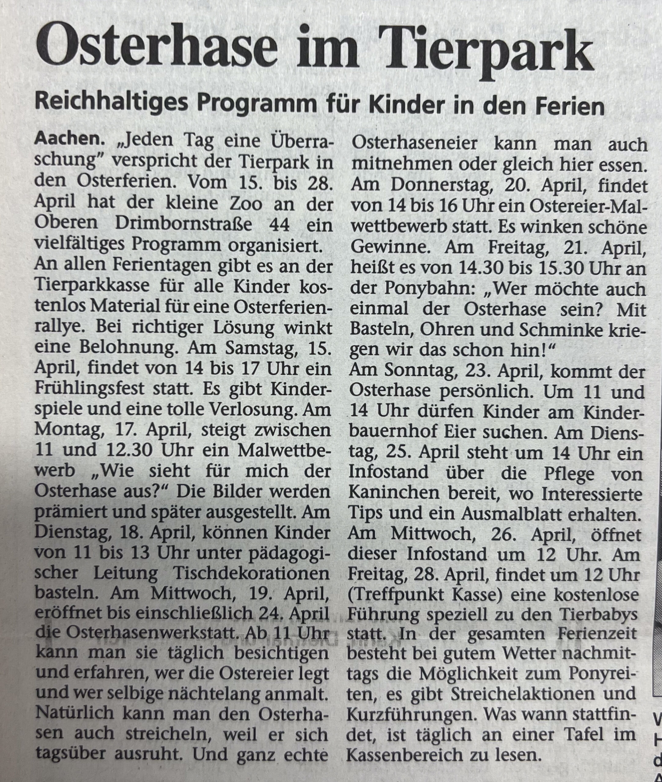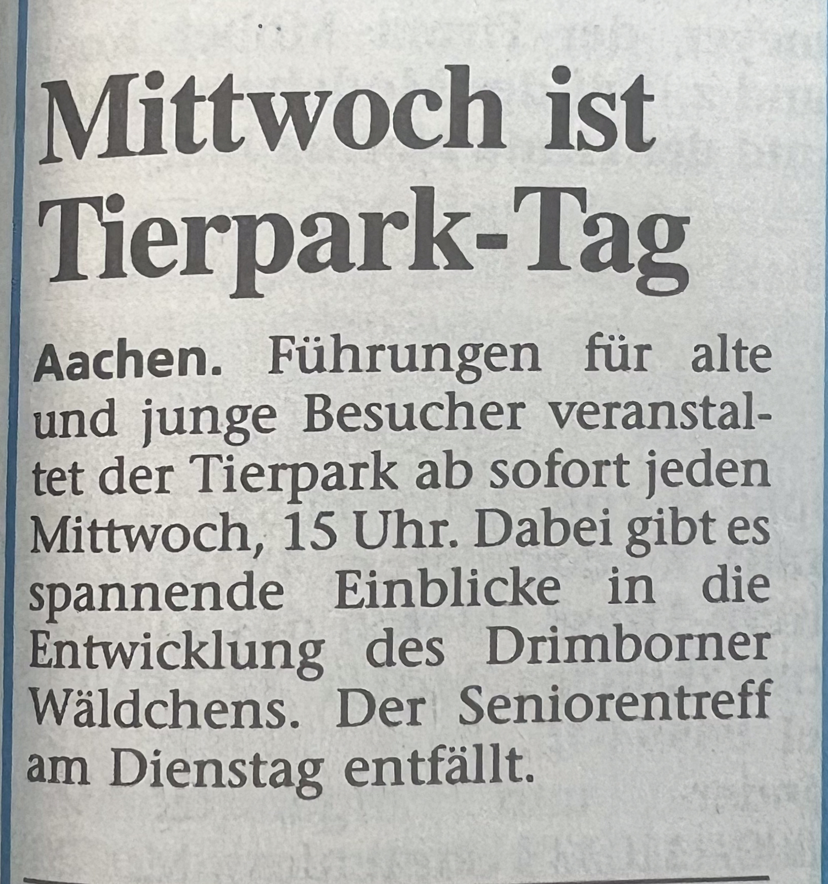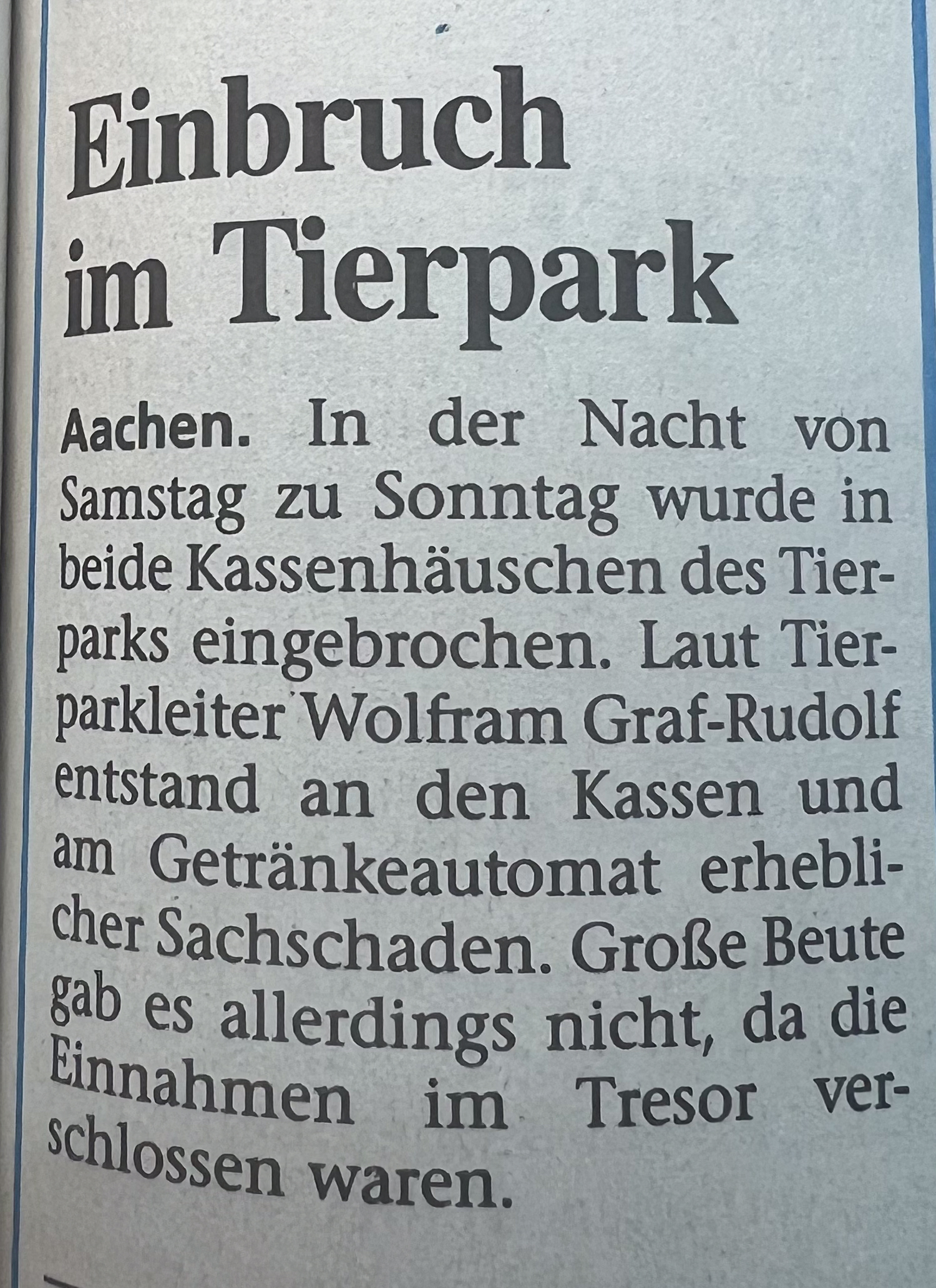 Kategorien Verschiedenes Zeitungsarchiv 2000 Neues Logo, Moorhühner und ein Piratenschiff Beitragsautor Von Herbert Sliwinski Veröffentlichungsdatum 30.06.2023 1999 Zurück zum Archiv… 2001 Teile Du diesen Beitrag als Erste(r)! Schlagwörter Presse ← 1999 Ein neuer Zoodirektor → 2001 Meersand, Pinguine und ein Kamelbaby