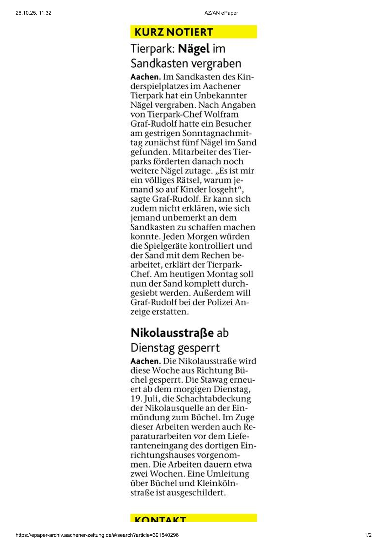 Verschiedenes Zeitungsarchiv