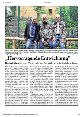 Kategorien Verschiedenes Zeitungsarchiv 2016 Jubiläum und tierisch gute Bilder Beitragsautor Von Herbert Sliwinski Veröffentlichungsdatum 03.07.2023 2015 Zurück zum Archiv… 2017 Teile Du diesen Beitrag als Erste(r)!